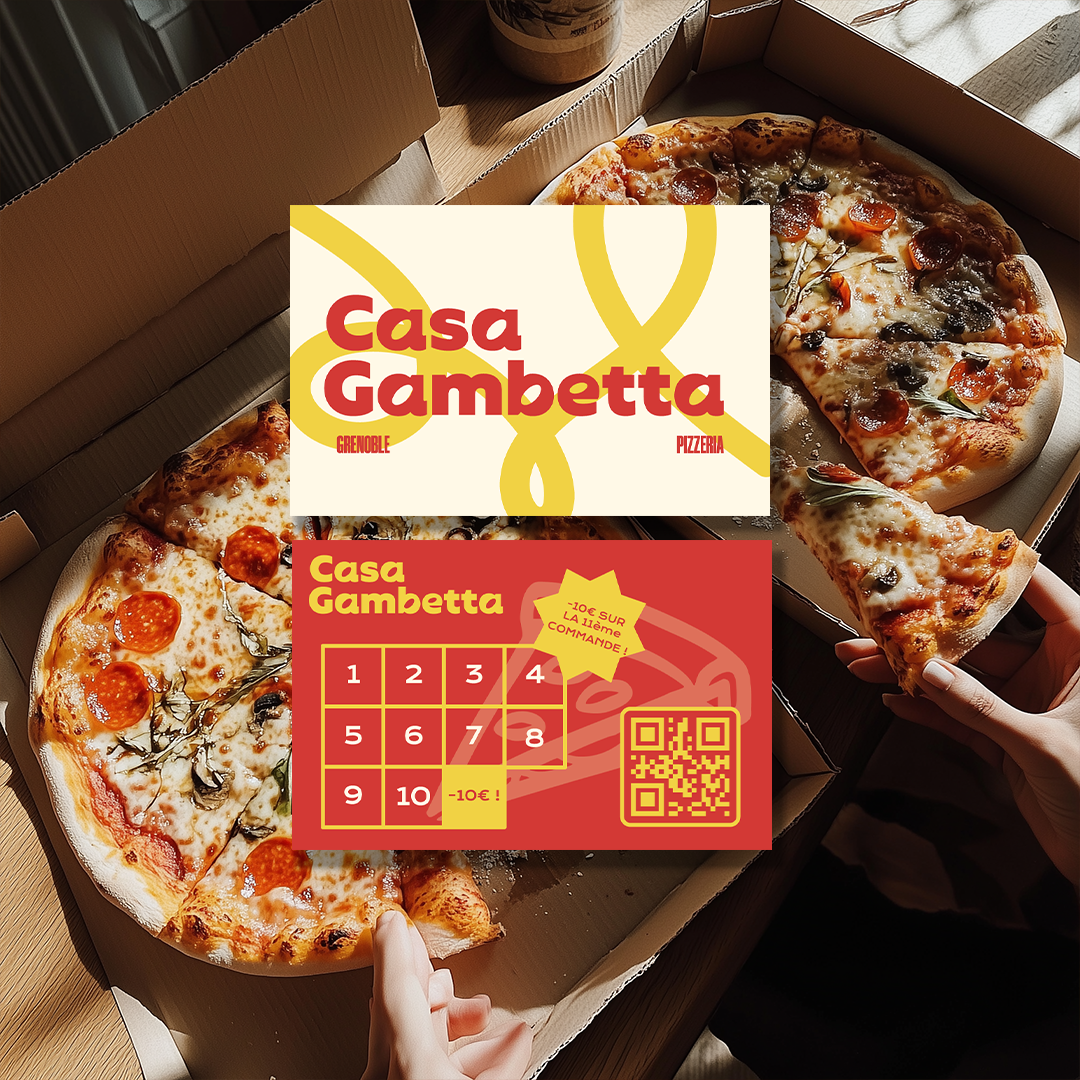 Nous avons cherché à faire dialoguer tradition et modernité, en traduisant l’âme italienne de Casa Gambetta dans une identité visuelle actuelle, mais pleine de cœur. Le résultat est une marque qui respire la convivialité, la passion et l’amour du travail bien fait, une identité qui donne envie de s’attabler, de partager et de revenir.